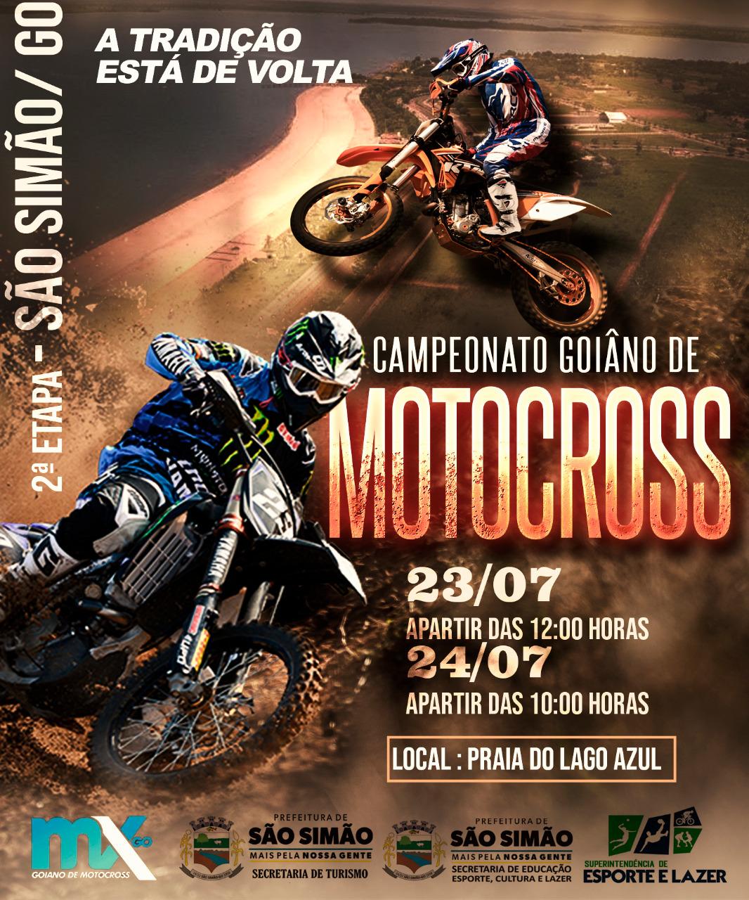 São Simão sediará, nos dias 23 e 24 de julho, a segunda etapa do Campeonato Goiano de Motocross, reunindo vários pilotos e amantes do esporte. A competição ocorrerá na Pista de Motocross de São Simão, localizada ao lado da área de Camping, na Praia do Lago Azul.