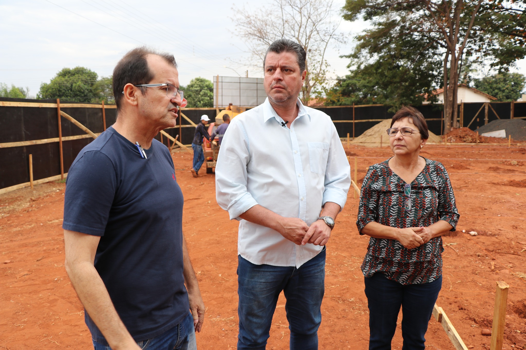 Finalizando o período matutino de agendas, o Prefeito encontrou-se ainda com a Secretária Municipal de Saúde, Dra. Suely Luiz e o consultor técnico de obras, o engenheiro Paulo Resende, no início da construção do Laboratório Municipal.