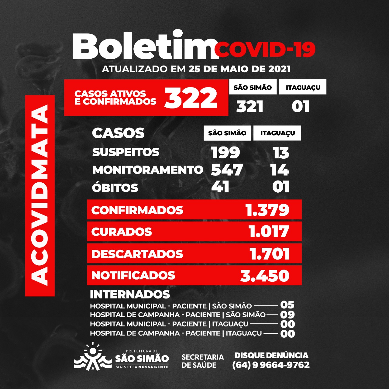 Boletim Epidemiológico Coronavírus n.º 145- 25/05/2021 – São Simão e Itaguaçu.