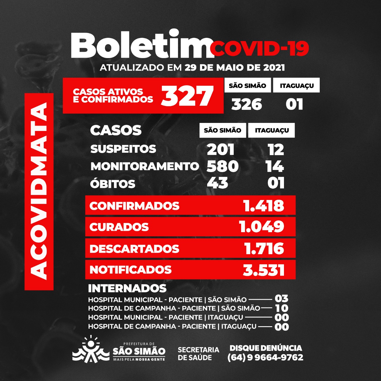 Boletim Epidemiológico Coronavírus n.º 149- 29/05/2021 – São Simão e Itaguaçu.