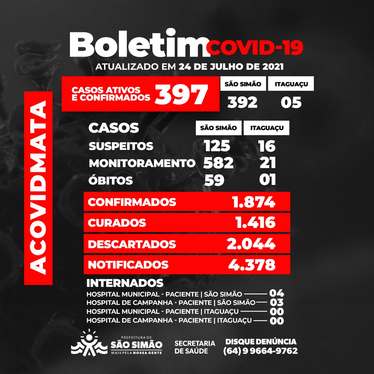 Boletim Epidemiológico Coronavírus n.º 204-24/07/2021 – São Simão e Itaguaçu.