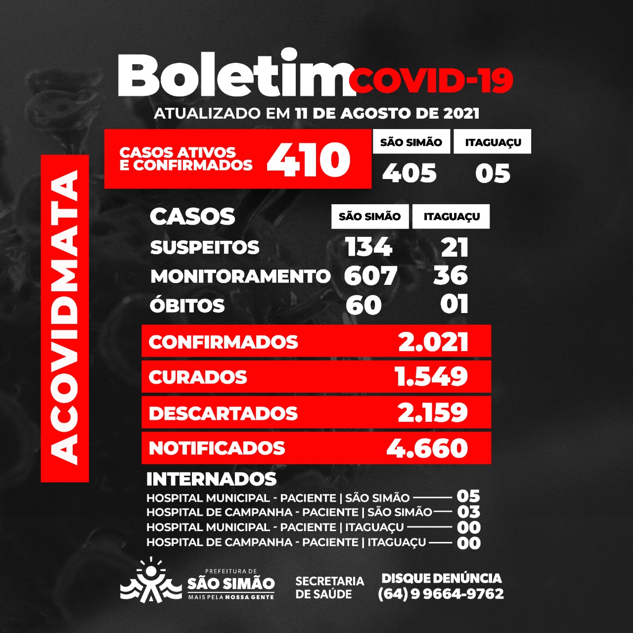 Boletim Epidemiológico Coronavírus n.º 221-11/08/2021 – São Simão e Itaguaçu.