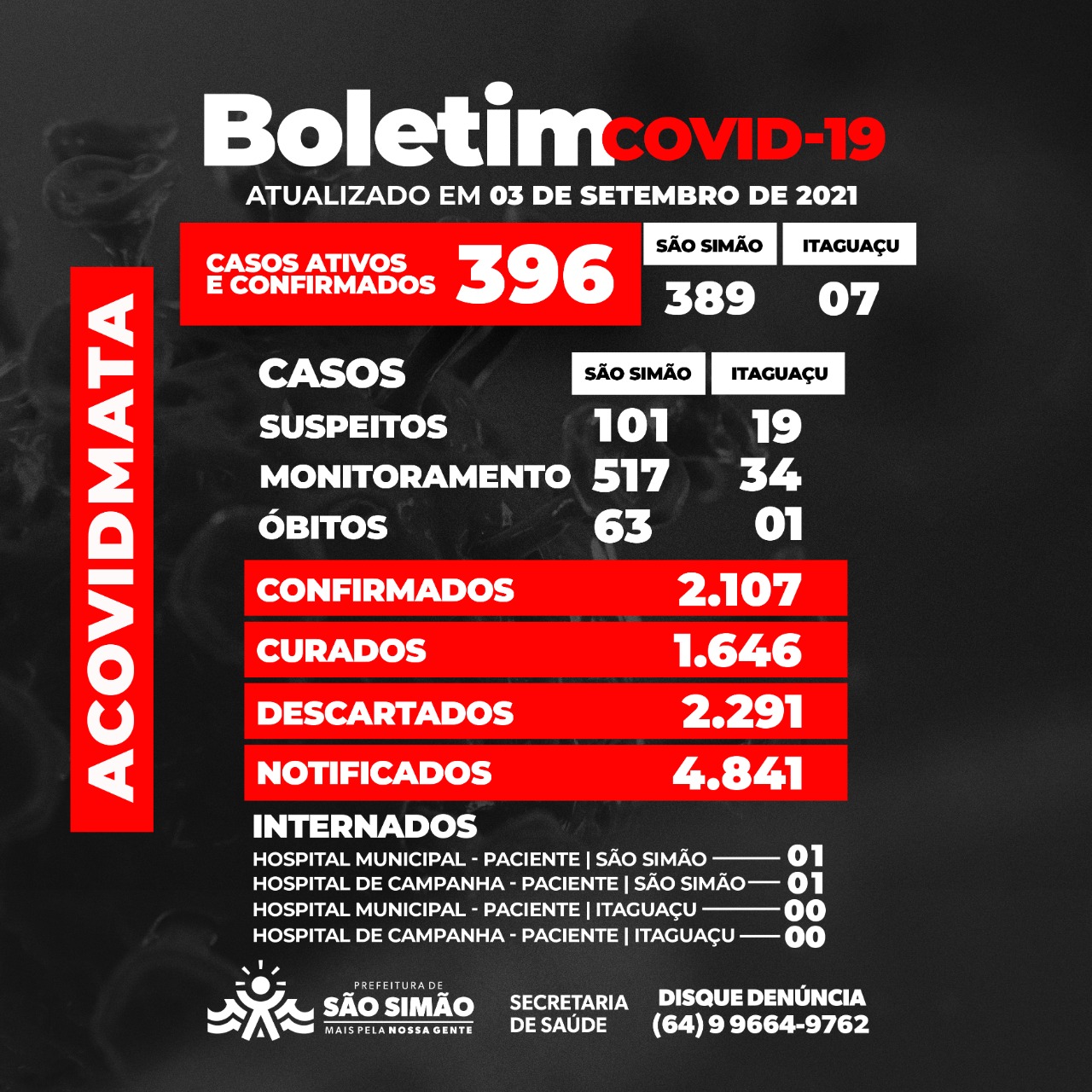 Boletim Epidemiológico Coronavírus n.º 242-03/09/2021 – São Simão e Itaguaçu.