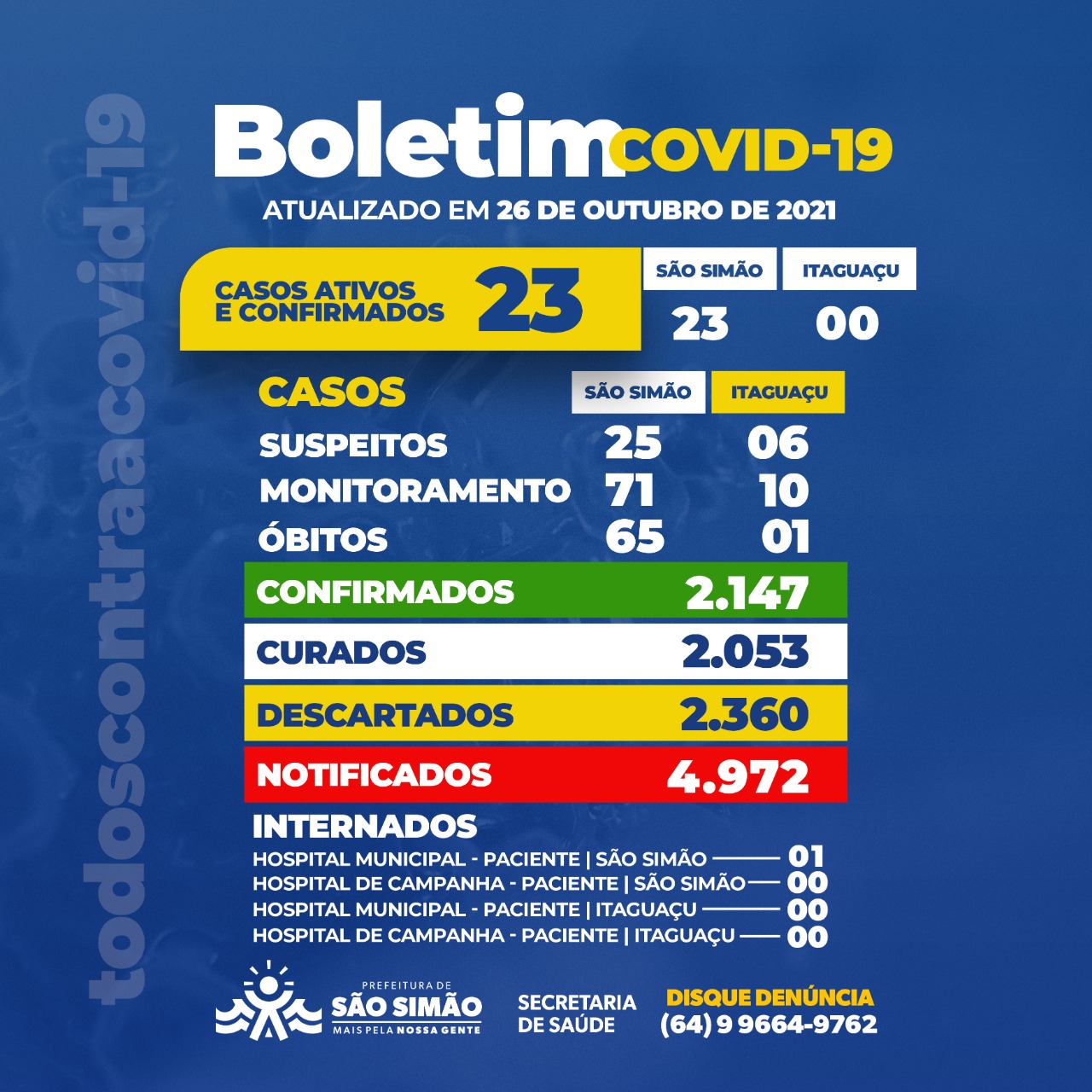 Boletim Epidemiológico Coronavírus n.º 296-27/10/2021 – São Simão e Itaguaçu.