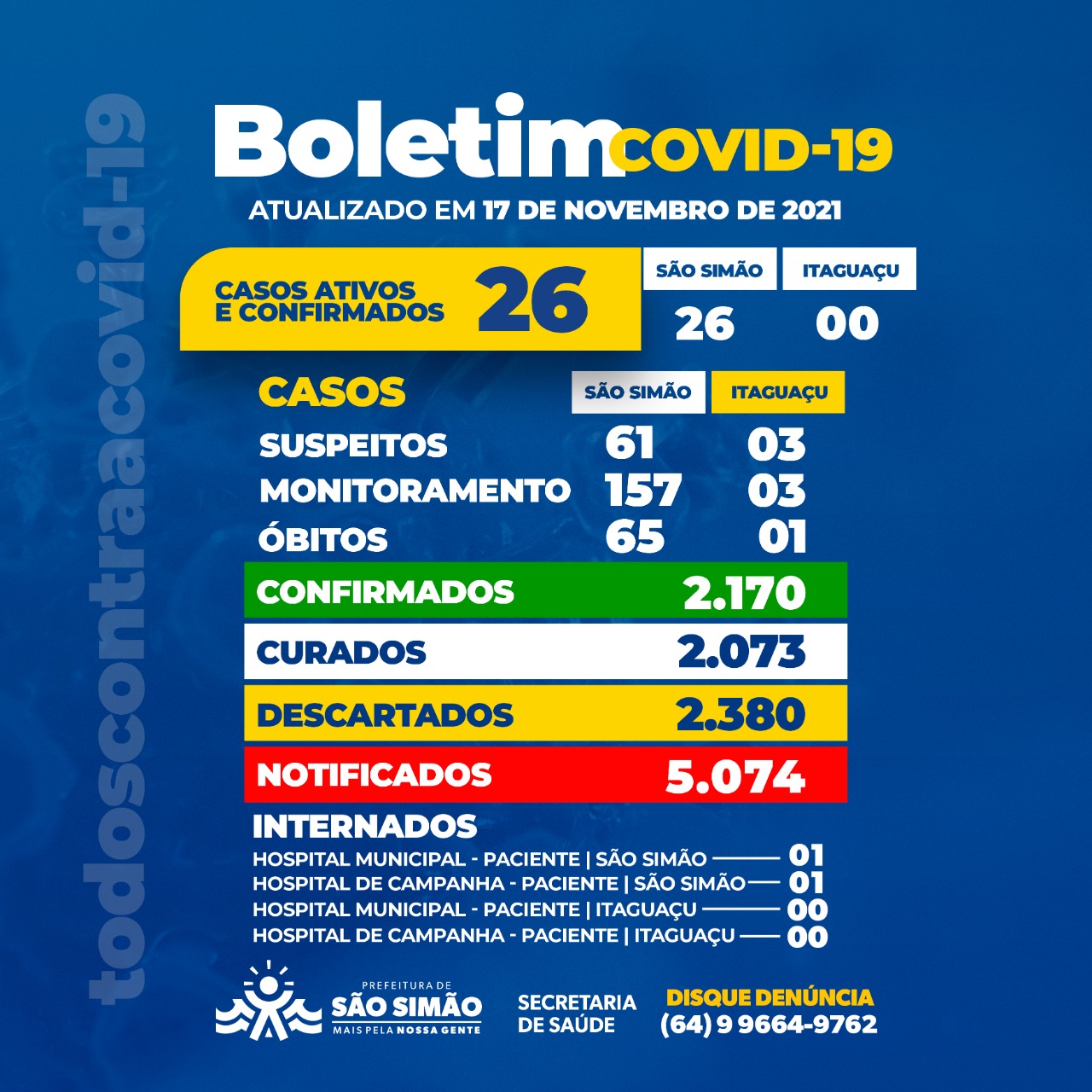 Boletim Epidemiológico Coronavírus n.º 316- 17/11/2021 – São Simão e Itaguaçu