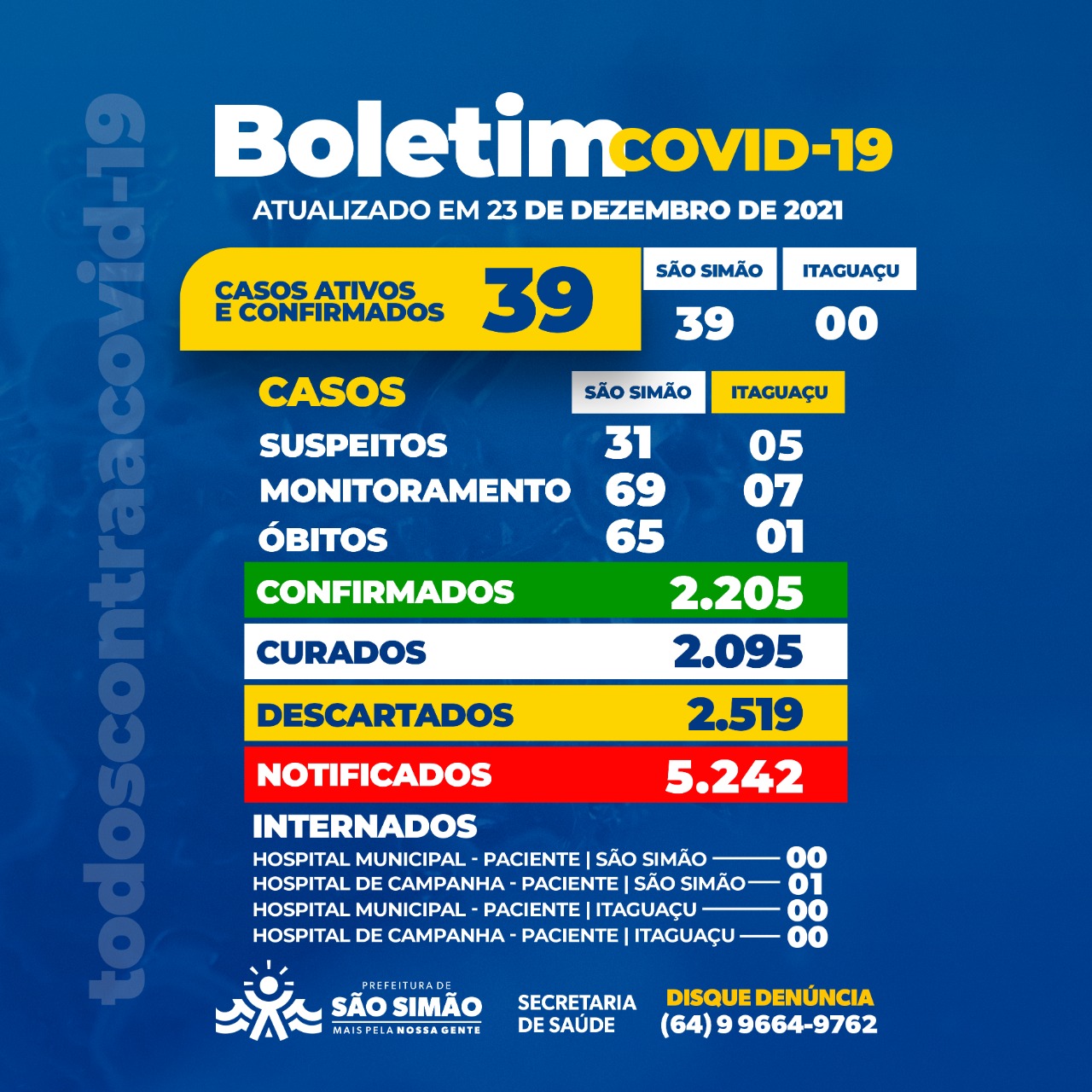 Boletim Epidemiológico Coronavírus n.º 351- 23/12/2021 – São Simão e Itaguaçu