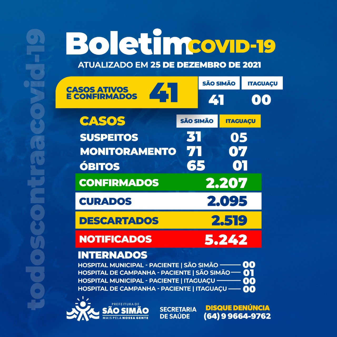 Boletim Epidemiológico Coronavírus n.º 353- 25/12/2021 – São Simão e Itaguaçu