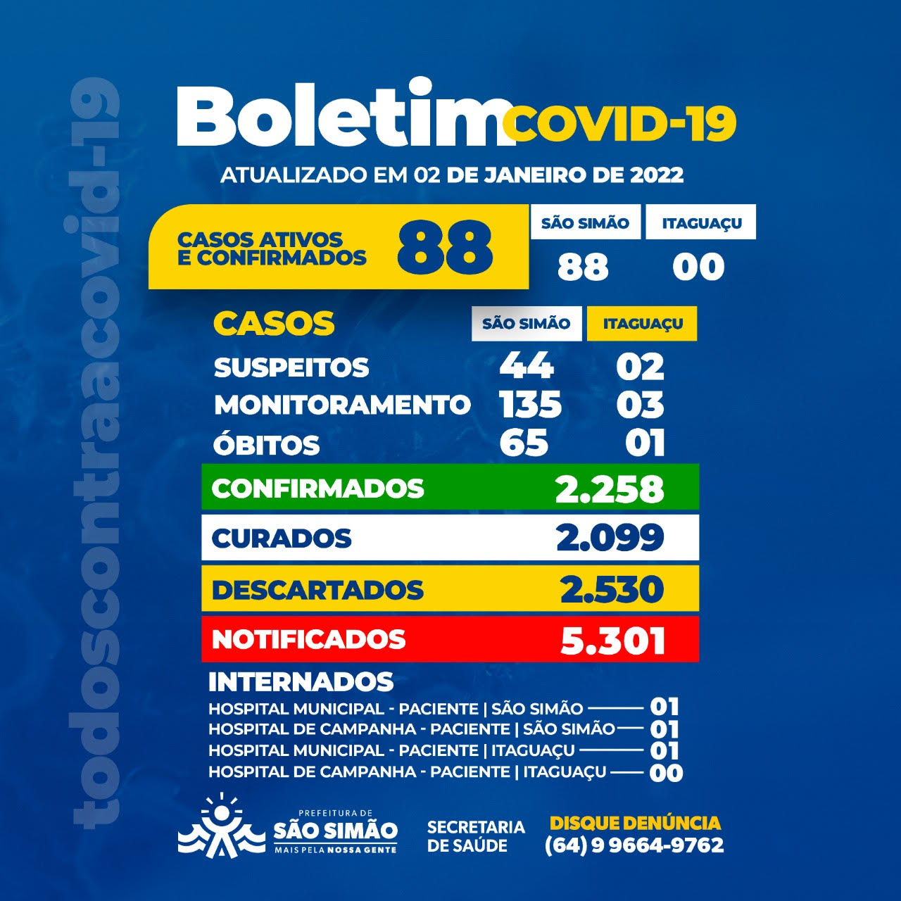 Boletim Epidemiológico Coronavírus n.º 361- 02/01/2022 – São Simão e Itaguaçu