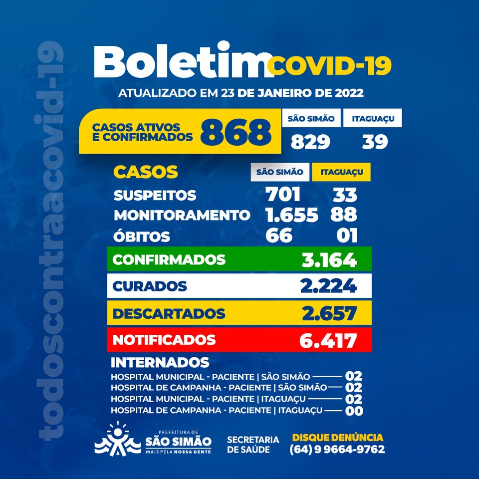 Boletim Epidemiológico Coronavírus n.º 382- 23/01/2022 – São Simão e Itaguaçu