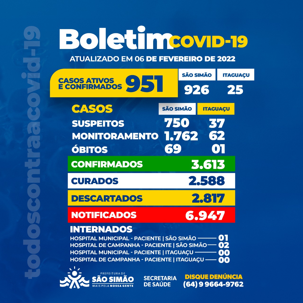 Boletim Epidemiológico Coronavírus n.º 396- 06/02/2022 – São Simão e Itaguaçu