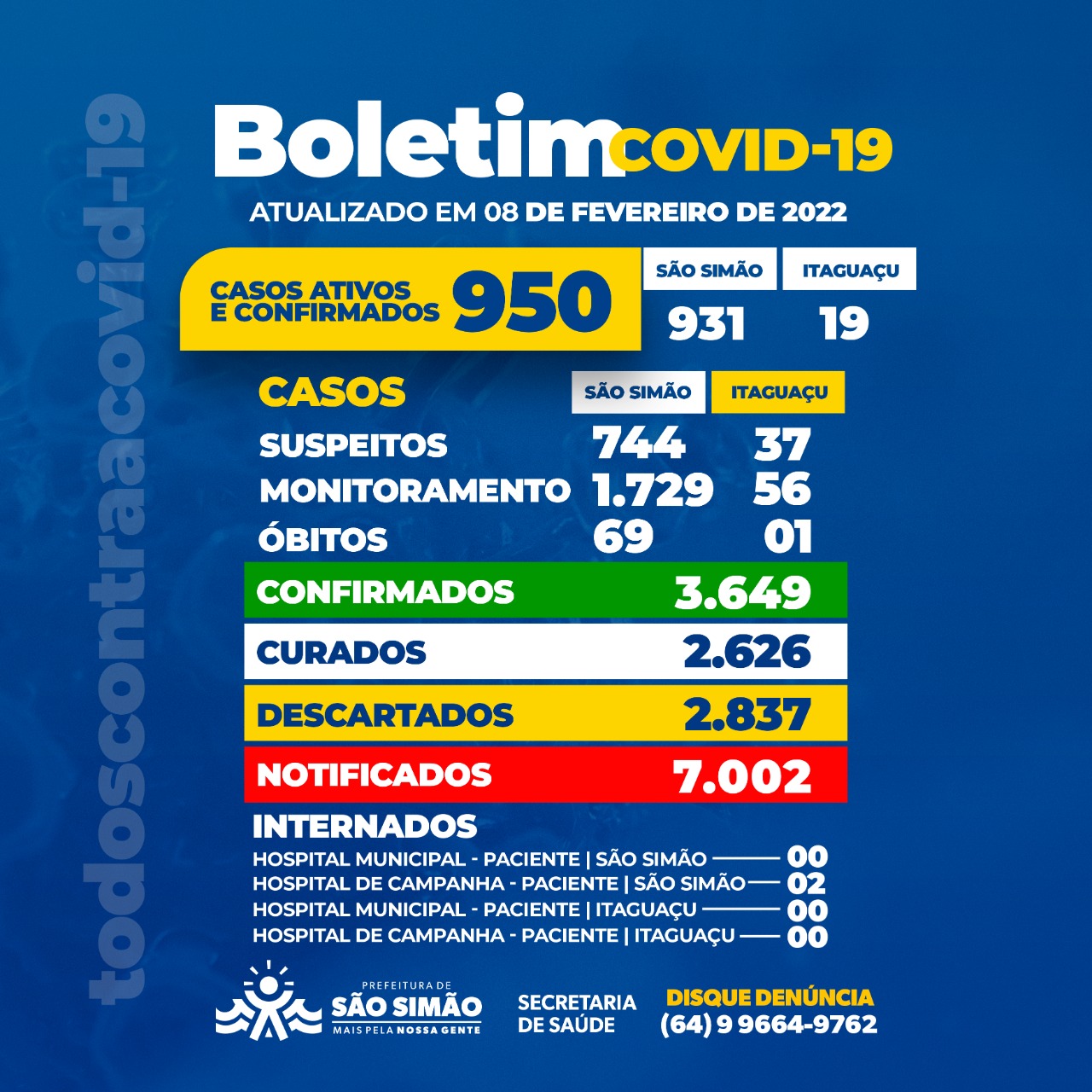 Boletim Epidemiológico Coronavírus n.º 398- 08/02/2022 – São Simão e Itaguaçu