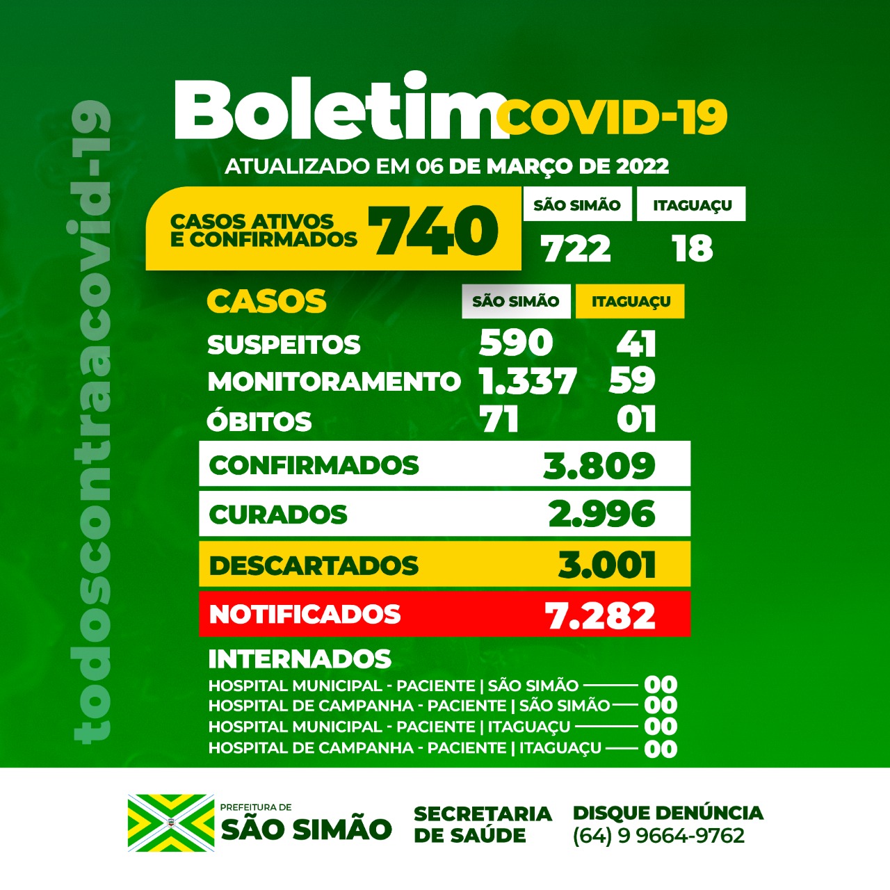 Boletim Epidemiológico Coronavírus n.º 424- 06/03/2022 – São Simão e Itaguaçu