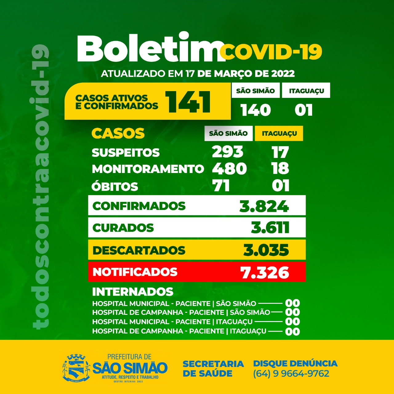 Boletim Epidemiológico Coronavírus n.º 434- 17/03/2022 – São Simão e Itaguaçu
