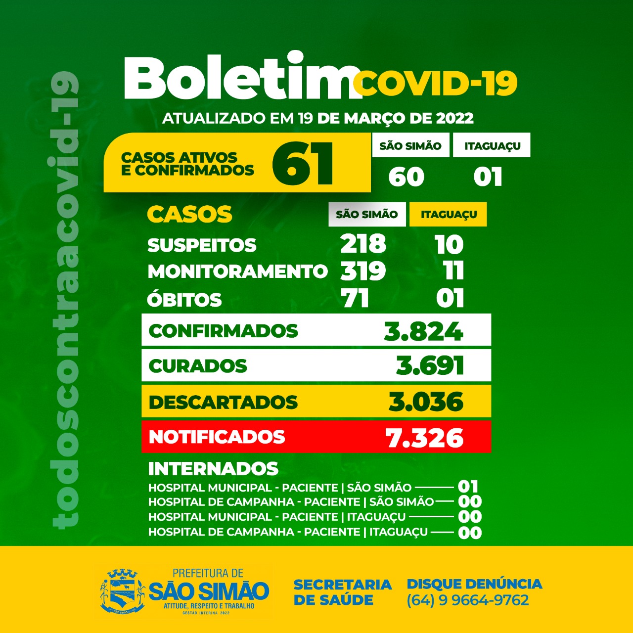 Boletim Epidemiológico Coronavírus n.º 436- 19/03/2022 – São Simão e Itaguaçu