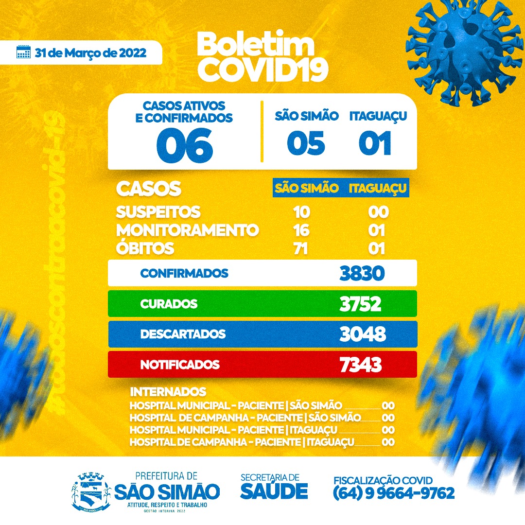 Boletim Epidemiológico Coronavírus n.º 448- 31/03/2022 – São Simão e Itaguaçu