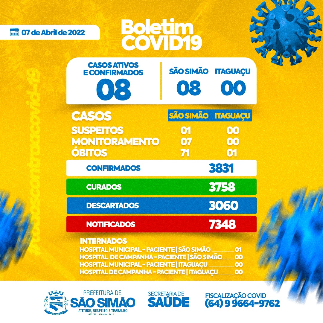 Boletim Epidemiológico Coronavírus n.º 455- 07/04/2022 – São Simão e Itaguaçu