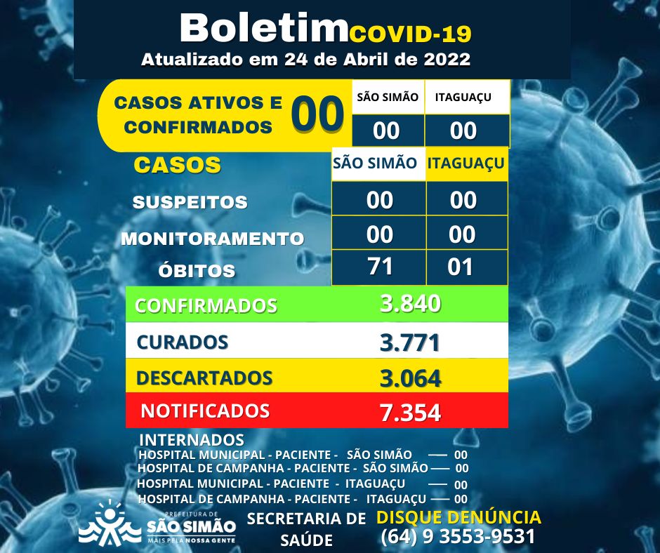 Boletim Epidemiológico Coronavírus n.º 472- 24/04/2022 – São Simão e Itaguaçu