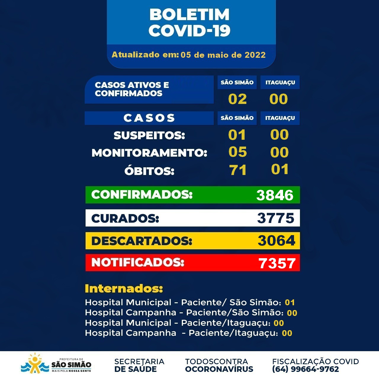 Boletim Epidemiológico Coronavírus n.º 482- 05/05/2022 – São Simão e Itaguaçu