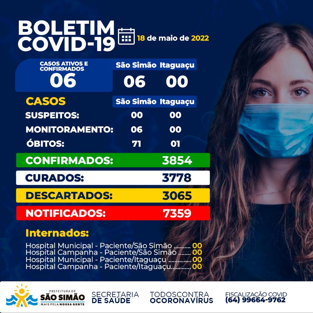 Boletim Epidemiológico Coronavírus n.º 493- 18/05/2022 – São Simão e Itaguaçu