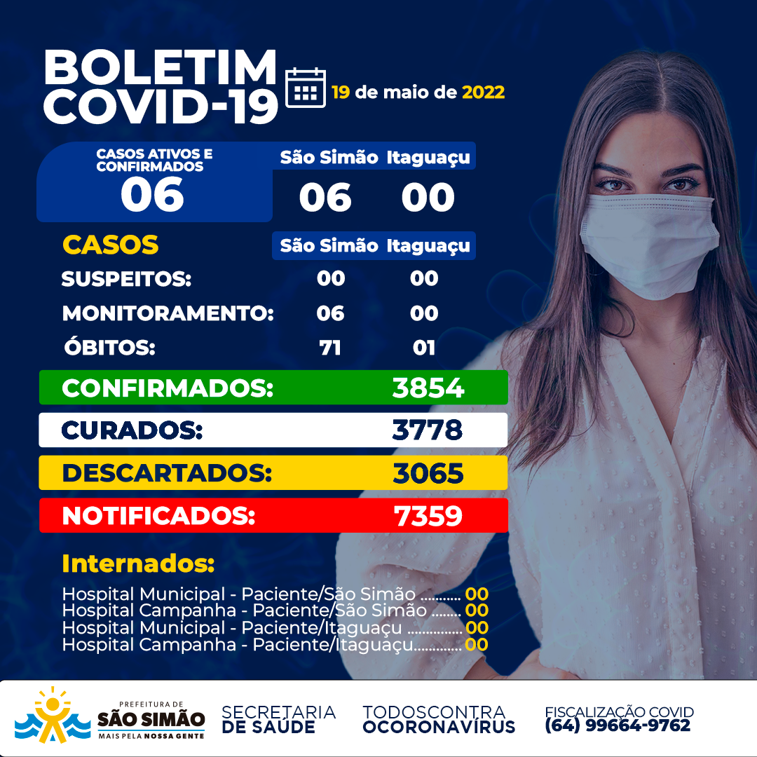 Início » Boletim Covid-19 » Boletim Epidemiológico Coronavírus n.º 494- 19/05/2022 – São Simão e Itaguaçu