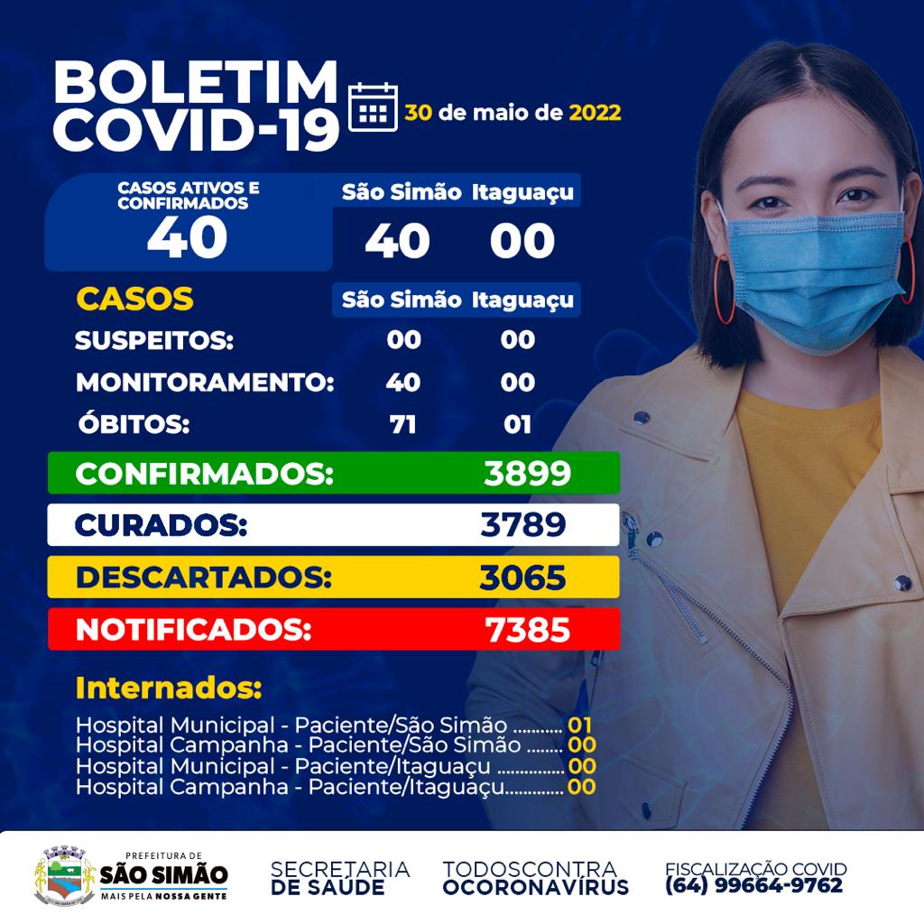 Boletim Epidemiológico Coronavírus n.º 505- 30/05/2022 – São Simão e Itaguaçu