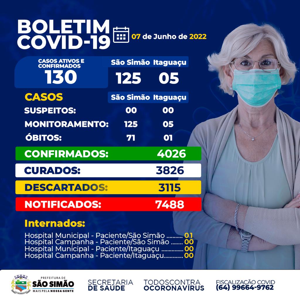 Boletim Epidemiológico Coronavírus n.º 513- 07/06/2022 – São Simão e Itaguaçu