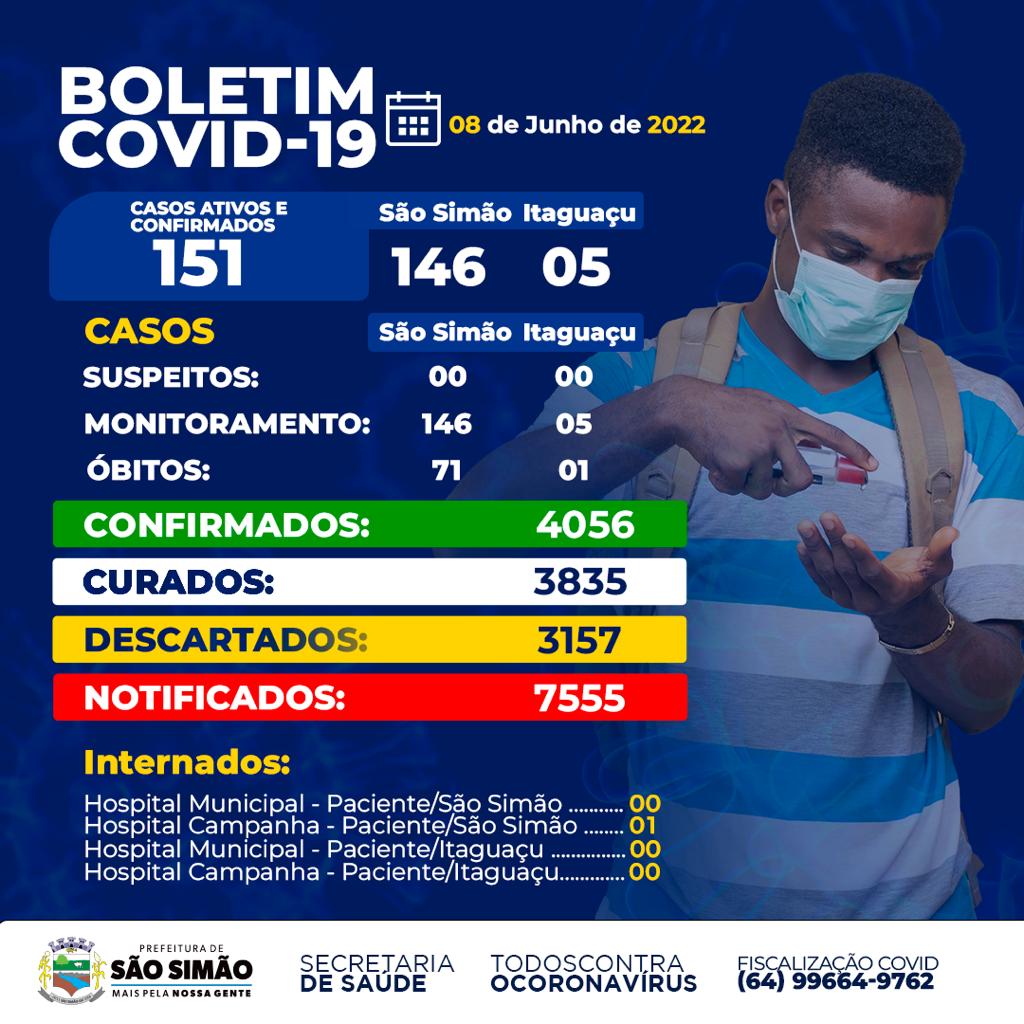 Boletim Epidemiológico Coronavírus n.º 514- 08/06/2022 – São Simão e Itaguaçu