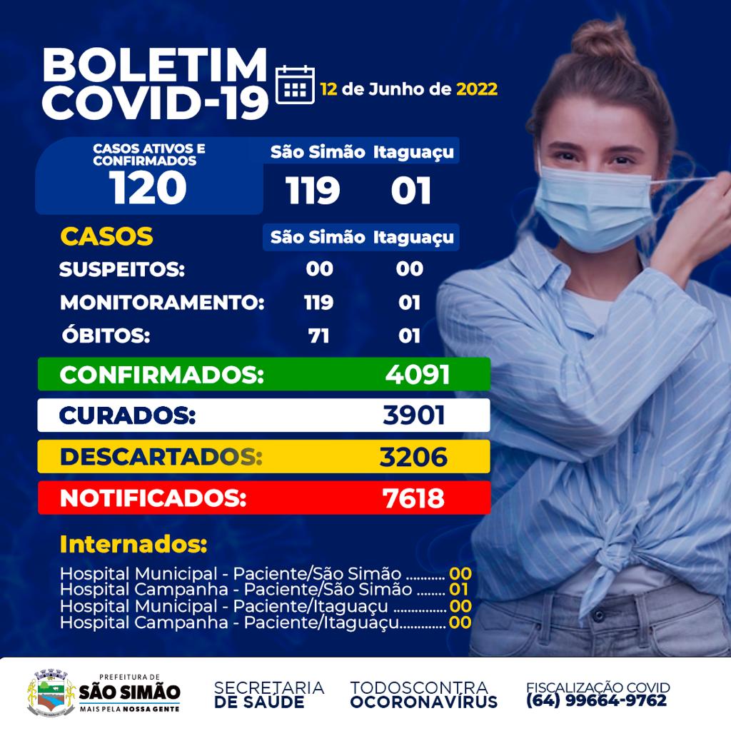 Boletim Epidemiológico Coronavírus n.º 518- 12/06/2022 – São Simão e Itaguaçu