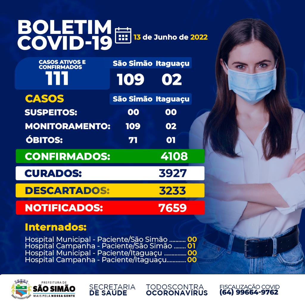 Boletim Epidemiológico Coronavírus n.º 519- 13/06/2022 – São Simão e Itaguaçu