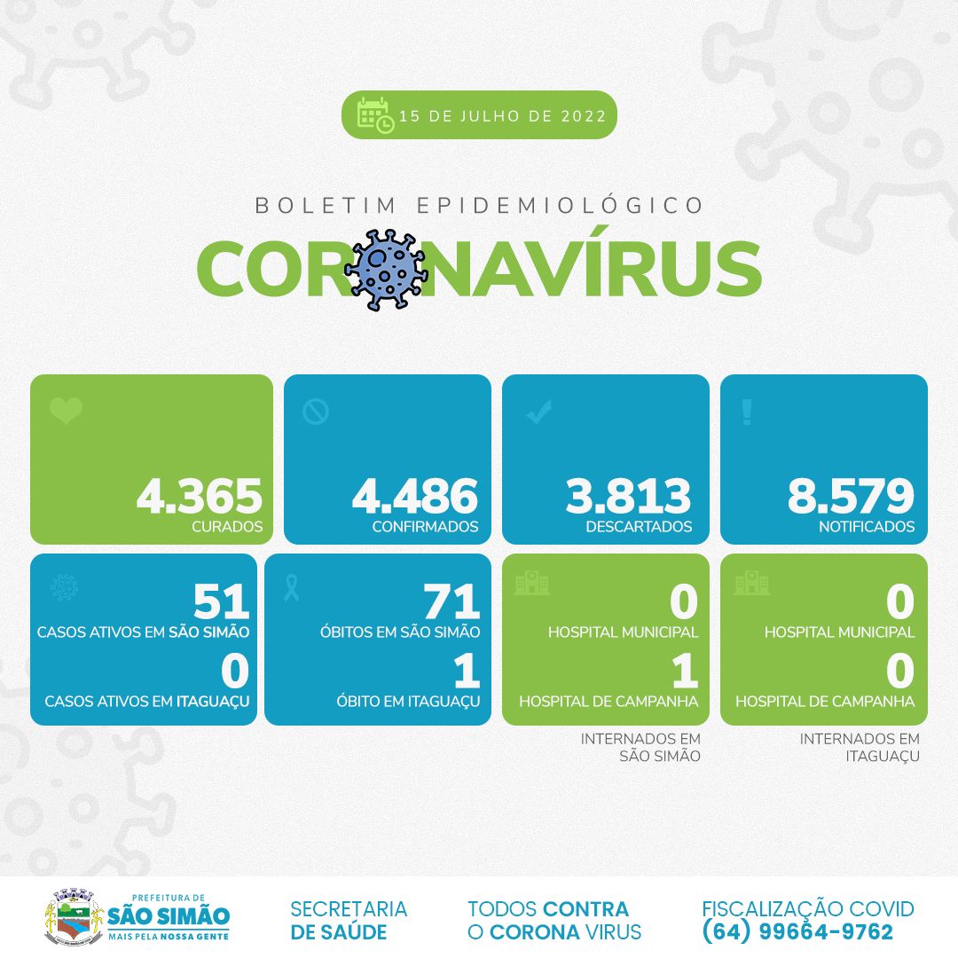 Boletim Epidemiológico Coronavírus n.º 551- 15/07/2022 – São Simão e Itaguaçu