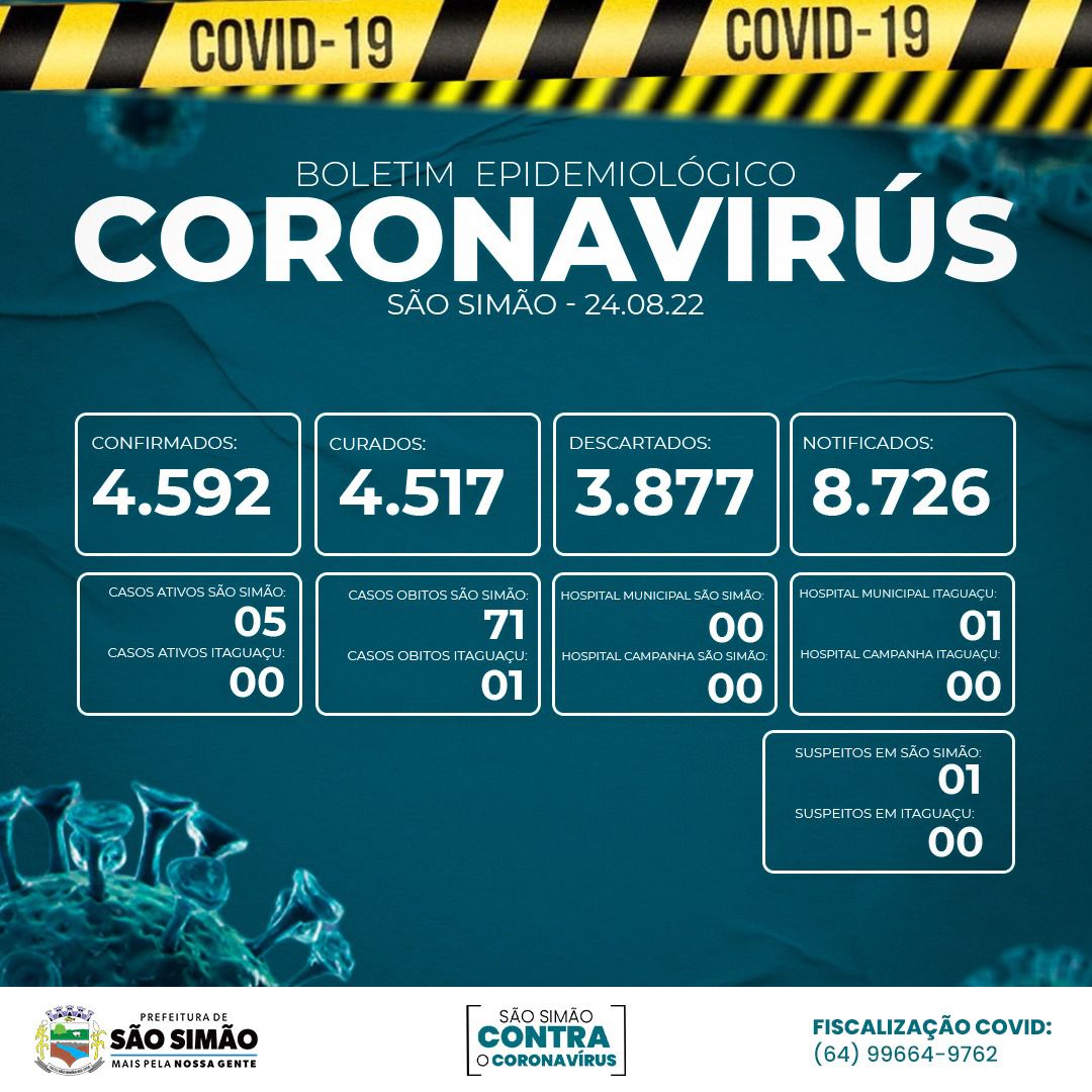 Boletim Epidemiológico Coronavírus n.º 595- 24/08/2022 – São Simão e Itaguaçu