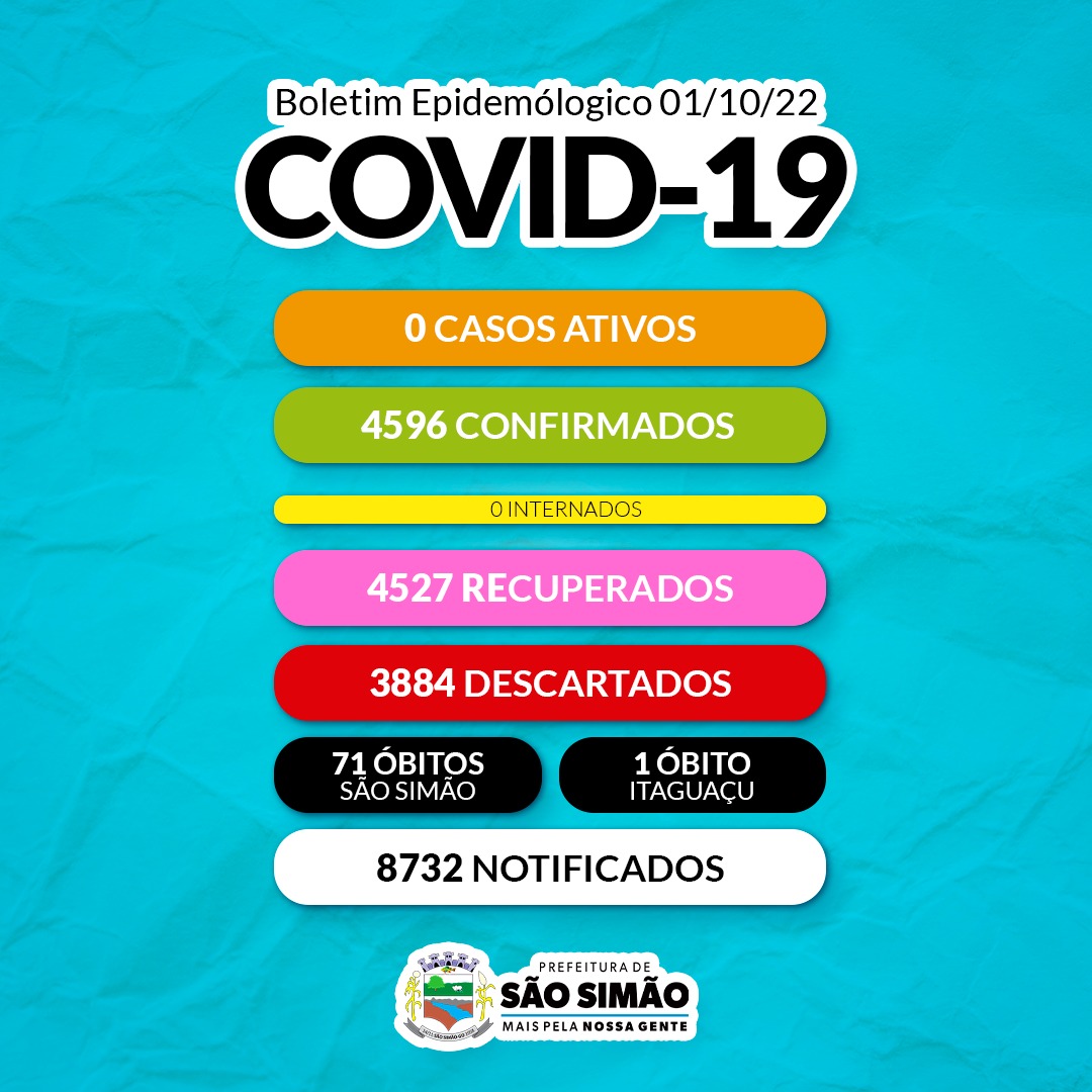 Boletim Epidemiológico Coronavírus n.º 630- 01/10/2022 – São Simão e Itaguaçu