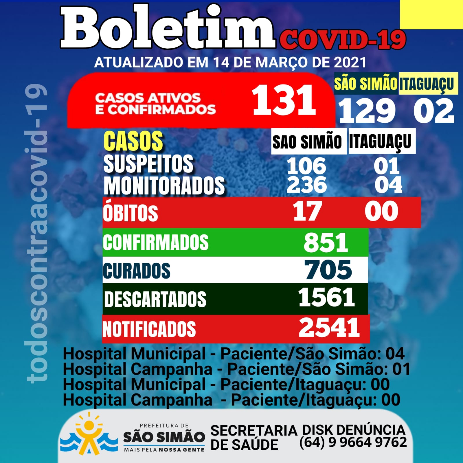 Boletim Epidemiológico Coronavírus n.º 72- 14/03/2021 – São Simão e Itaguaçu.