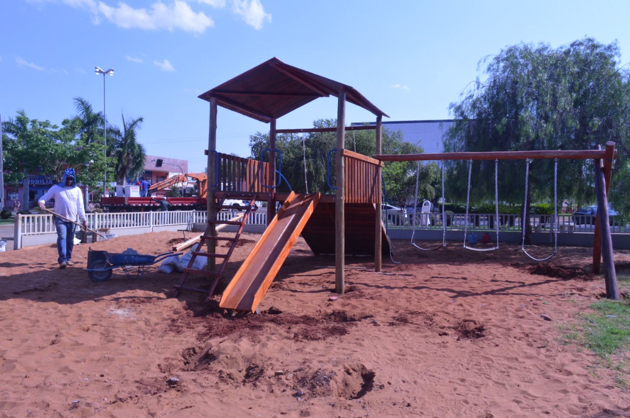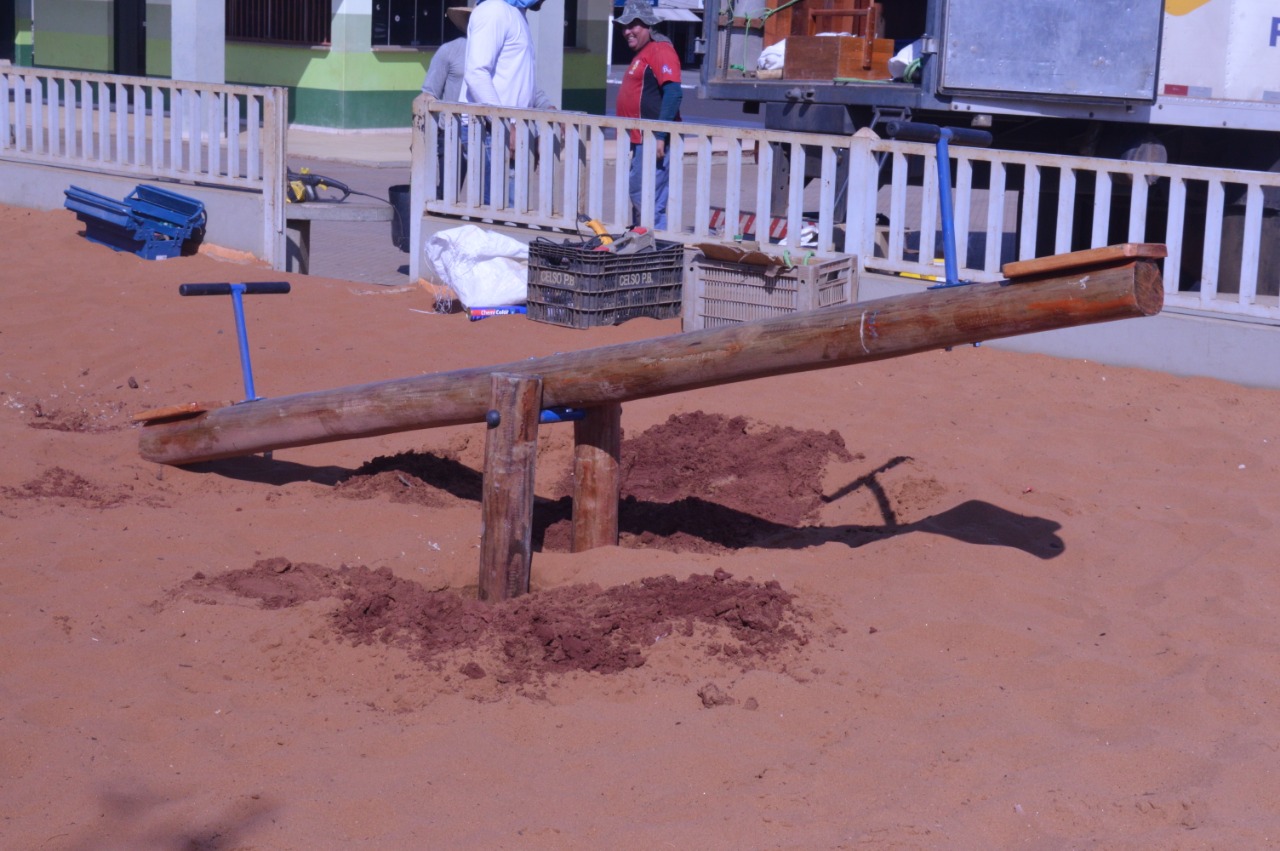 INFRAESTRUTURA- A Secretaria do Turismo por meio da Superint. de Infraestrutura, realizou a substituição do Parquinho situado na Praça Júlio Bernardes. O novo parquinho conta com uma estrutura maior melhor e terá também uma nova pintura e ainda contará com a troca da areia do local. Além da praça, dois outros parquinhos serão montados também na região da Praia do Lago Azul.