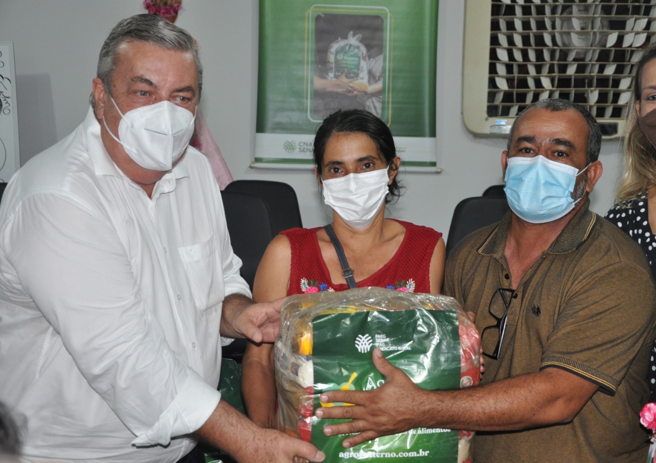 Ao final da reunião, as famílias que estão inseridas no CadÚnico, foram beneficiadas com as cestas.